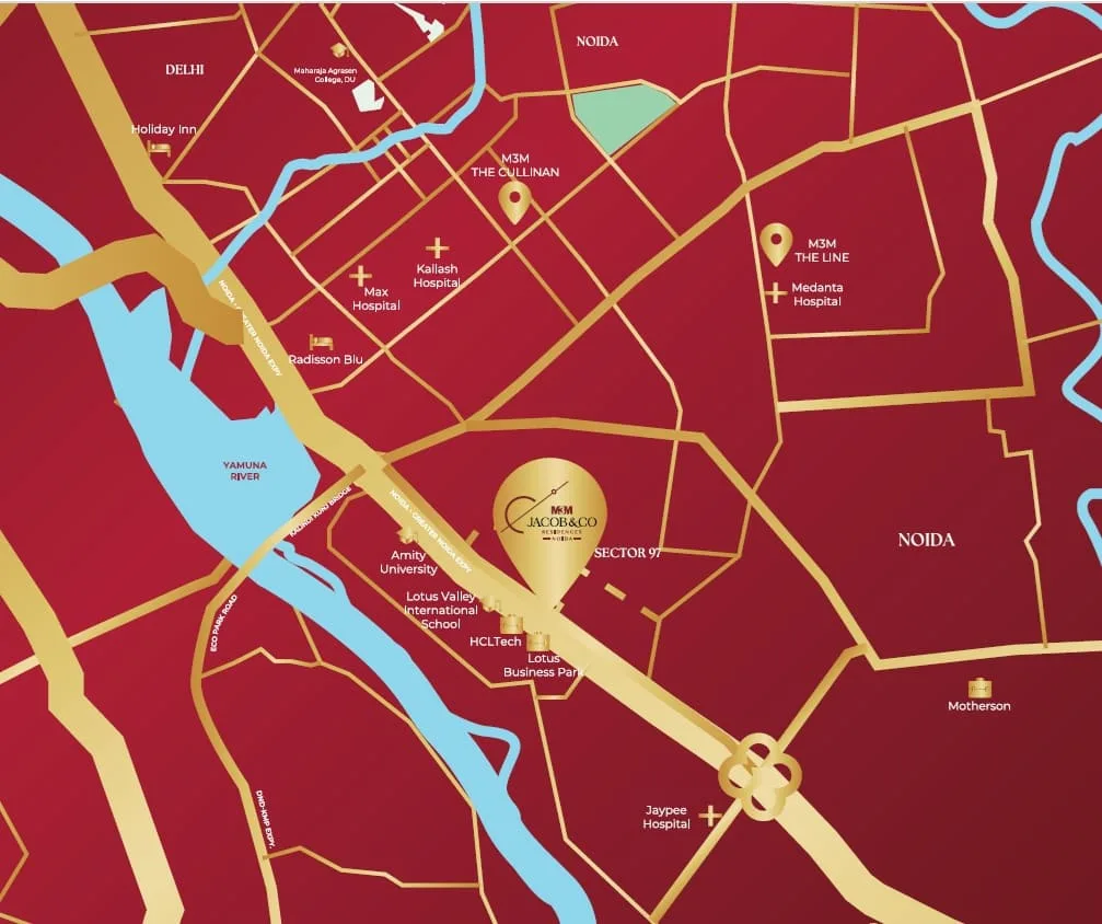 Choose Jacob & Co Noida for a lifestyle that blends global luxury with Indian excellence. As India’s first branded residences by Jacob & Co, this masterpiece by M3M India redefines ultra-luxury living with diamond-inspired architecture, glass façade towers, and limited-edition 3, 4 & 5 BHK residences. Located in Sector 97, Noida, just minutes from Delhi and the upcoming Film City, it offers world-class amenities, premium retail, and India’s first Jacob & Co flagship store. With only 270 exclusive homes, every residence here is a statement of prestige, artistry, and timeless value.